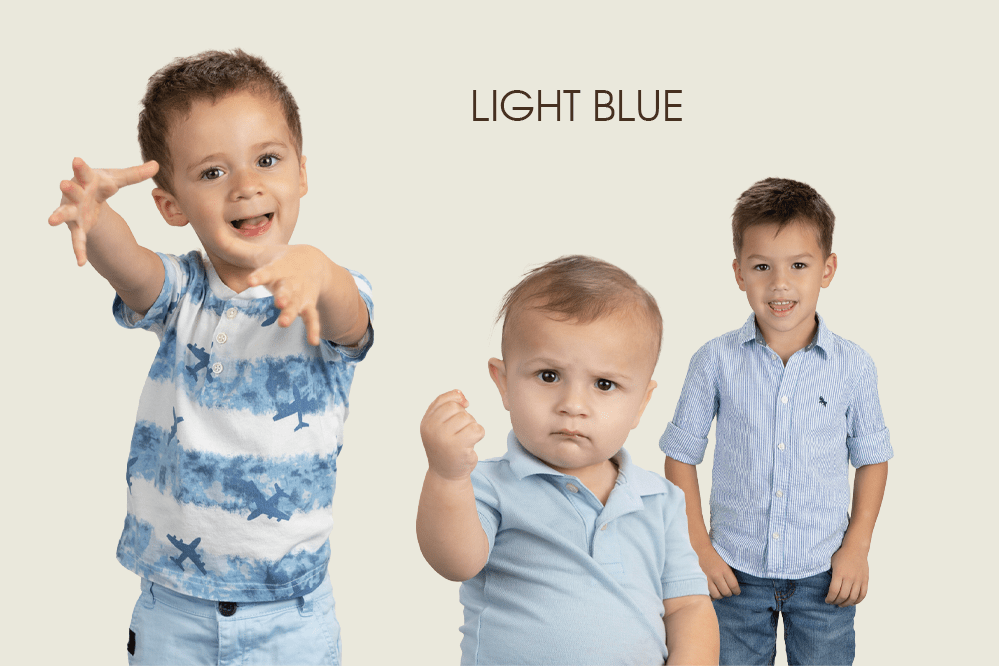 I recommend soft earthy tones such as white, cream, pink, blue, tan, aqua, rust, and olive green. Red works nicely as well. Solid colors are best, but patterns like stripes, flowers, and plaids are also suitable. For best results, I advise against clothing with characters or too many blocks of colors.